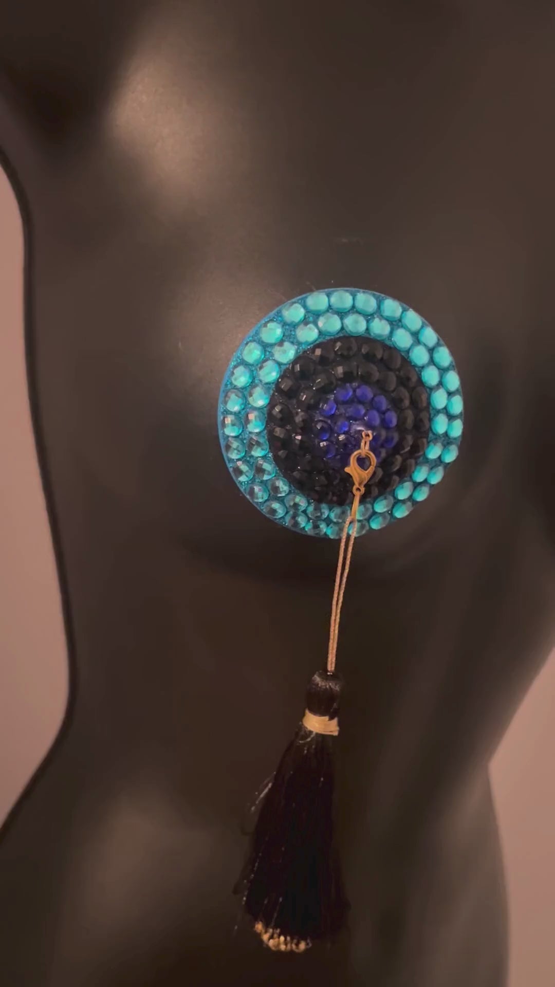VELVET UNDERGROUND Blue, Aqua and Black Crystal Pasties, Nipple Covers with Tassels (2pcs
