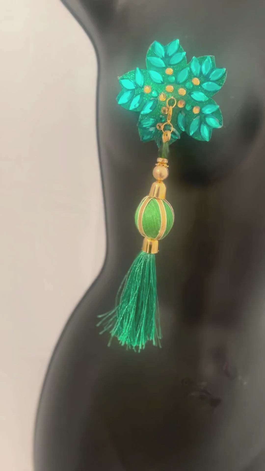A whole load of festive, fabulous personal fashion here! Don't be fooled by the big gem effect - these HOLLY BERRY nipple pasties are lightweight perfect to effortlessly add sensational sparkle and style. The tassels are removable and you can rotate this design for your preferred look. Intricate and one of a kind. Choose from red & gold or green & gold variations. Either way, these nipple pasties are a stunning way to add a lot of fashion to your passion. Beautiful and irreplaceable. Just like you.