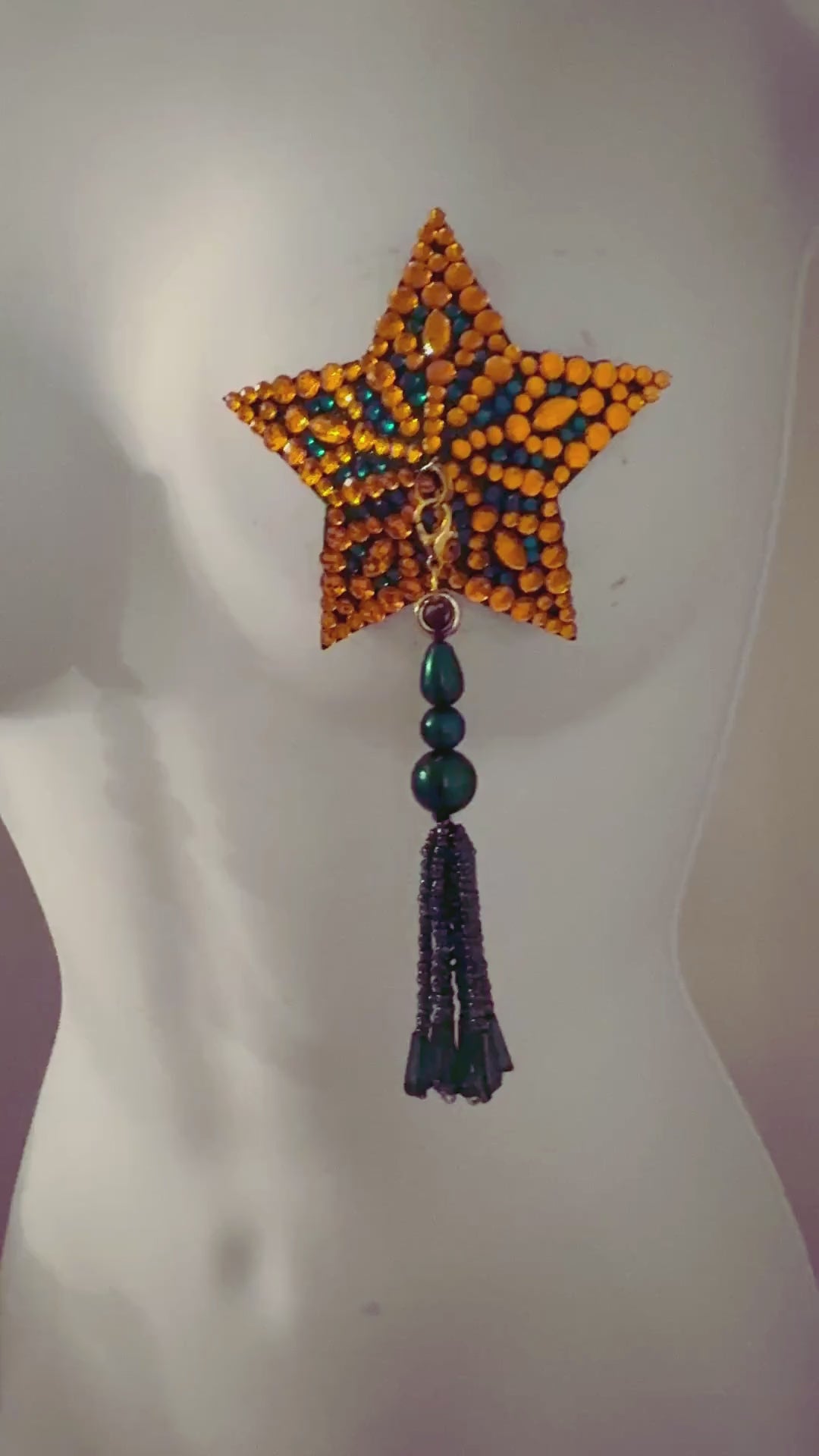 Step into the spotlight and own your moment with KITTY star pasties, where vibrant green and orange collide in a playful celebration of bold glamour. Featuring removable tassels that sway with every move, these pasties are made for showgirls who live for the thrill of the stage....and the quiet encore of private performances.