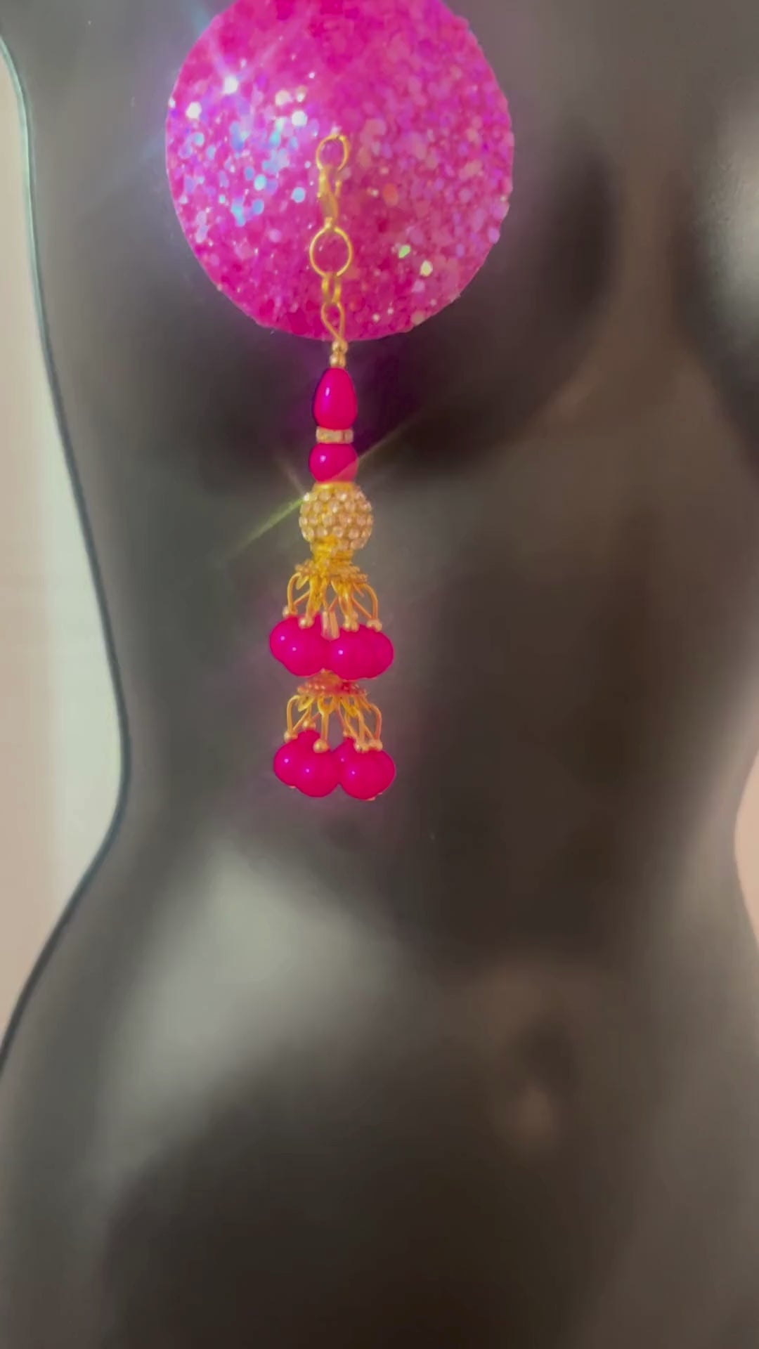 These MARGOT nipple pasties boast the perfect barbie-inspired pink, perfect for every public or private red carpet moment. Despite their big, bold appearance, they are lightweight which makes them perfect to effortlessly add sensational sparkle and style. The tassels are removable and you can rotate this design for your preferred look. Intricate and one of a kind and handmade with love. Say it all without saying a word gorgeous!