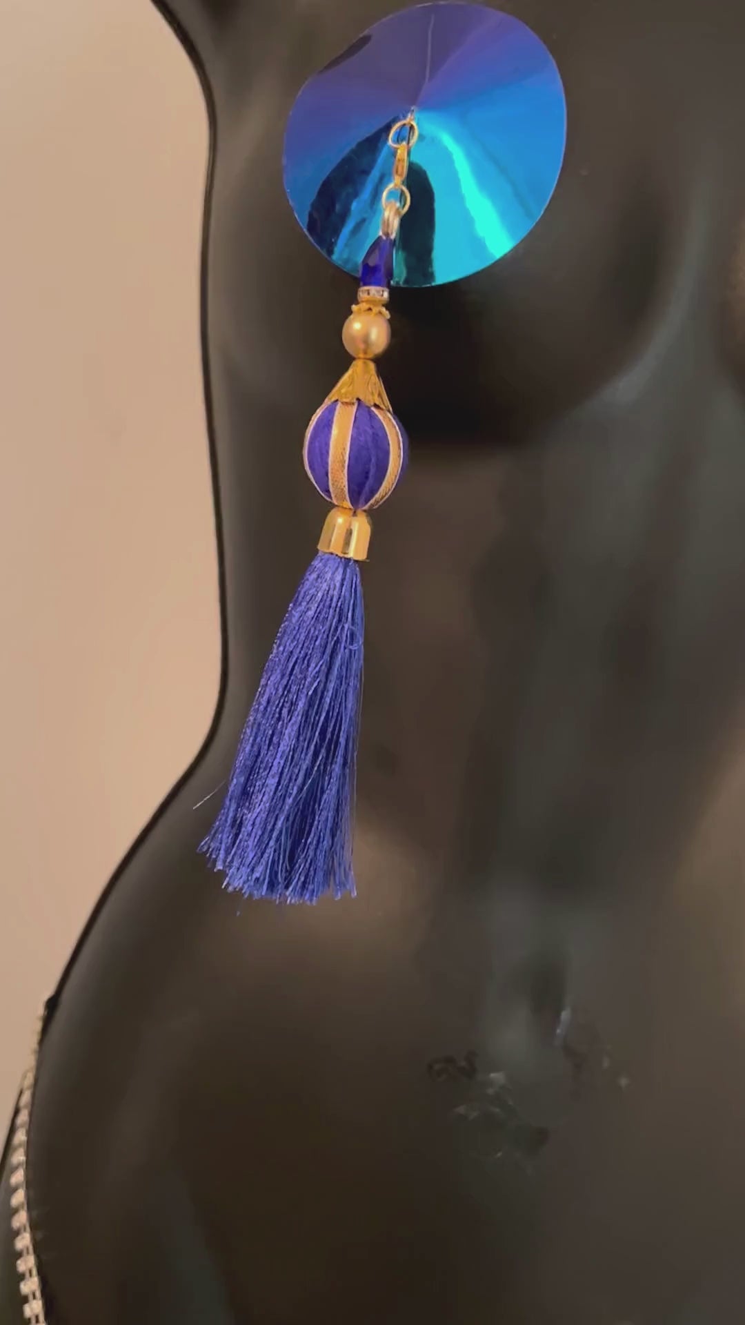 MINA VON VIXEN Royal Blue Nipple Pasty, Covers (2pcs) with 2 Pairs of Removable Tassels! For Lingerie Festivals Carnival Burlesque Raves