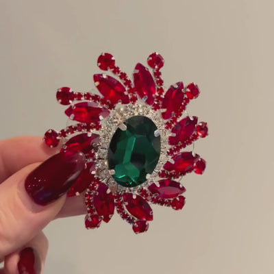 MISTLETOE - Ruby Emerald & Rhinestone Nipple Pasties, Covers (2pcs) for Festivals, Carnival Raves Burlesque Lingerie