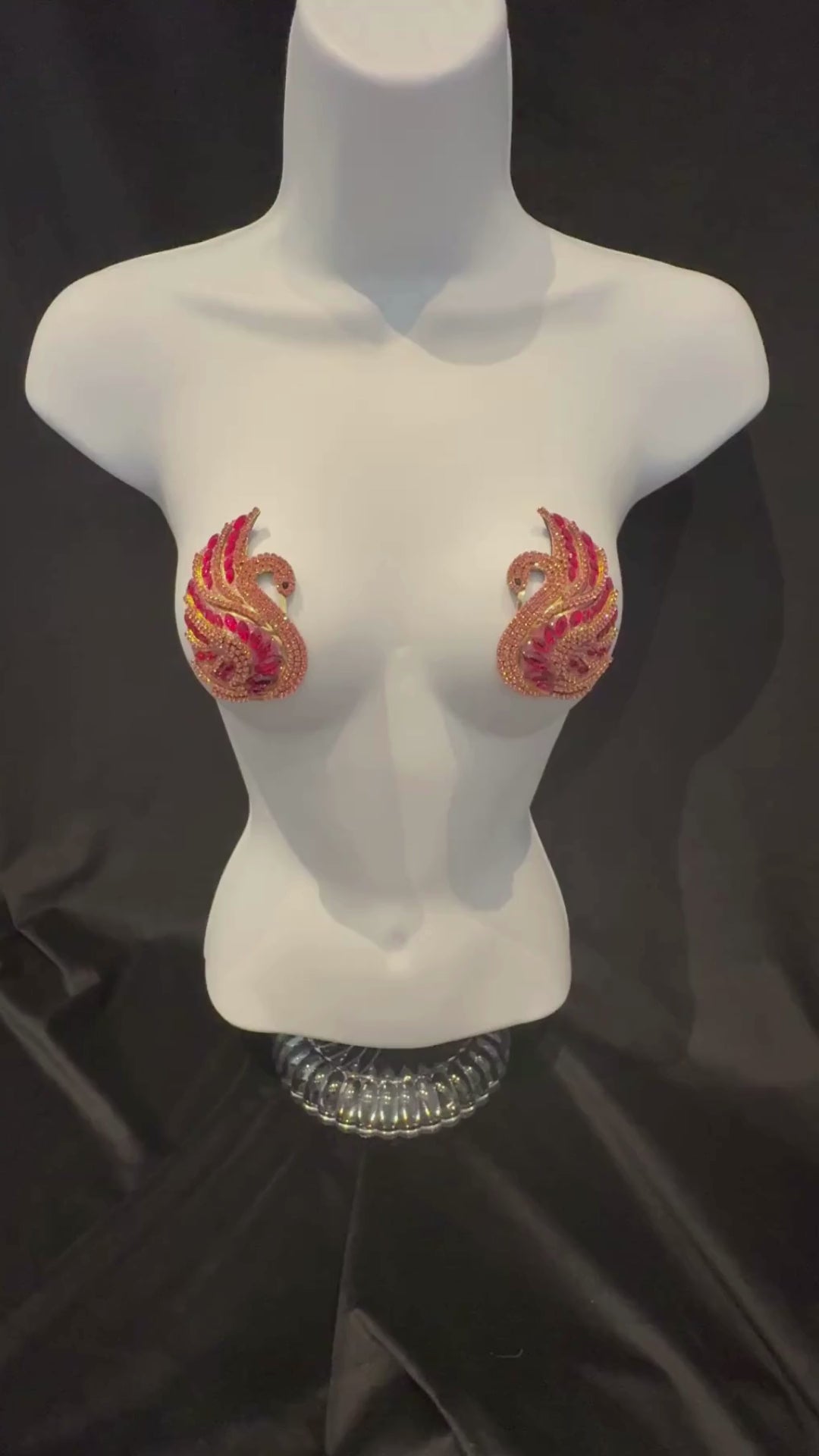 Grace meets Glamour with these ODETTE Swan Pasties- an homage to the Swan Queen herself. Inspired by the timeless elegance of Swan Lake, these enchanting pasties pair romantic pink with radiant gold, capturing both the softness of Odette and the allure of a showgirl in full glamour.
