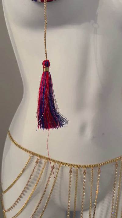 Give me what I want, what I really really want! By popular demand, these POSH nipple pasties are a positively perfect glitter and gem expression of national pride. These nipple covers invite an appetite for flirty fun! The lightweight tassels are extra long (8+ inches) - perfect for a little motion every time you move. Also, these nipple pasties come made ready to wear - just peel and stick!