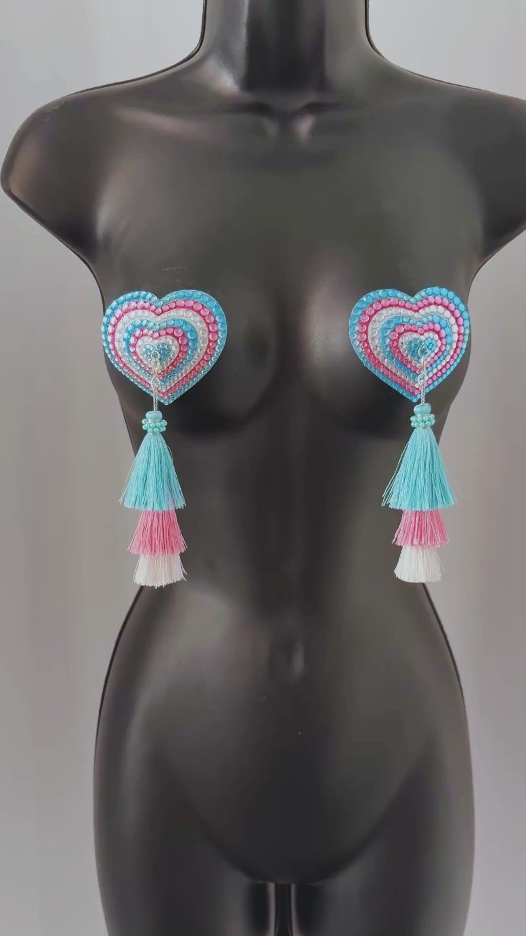 SPARKLE RESISTANCE Trans Heart Dirty Martini x Appeeling Nipple Pasties with Tassels (2pcs) Sale price$49.95 USD