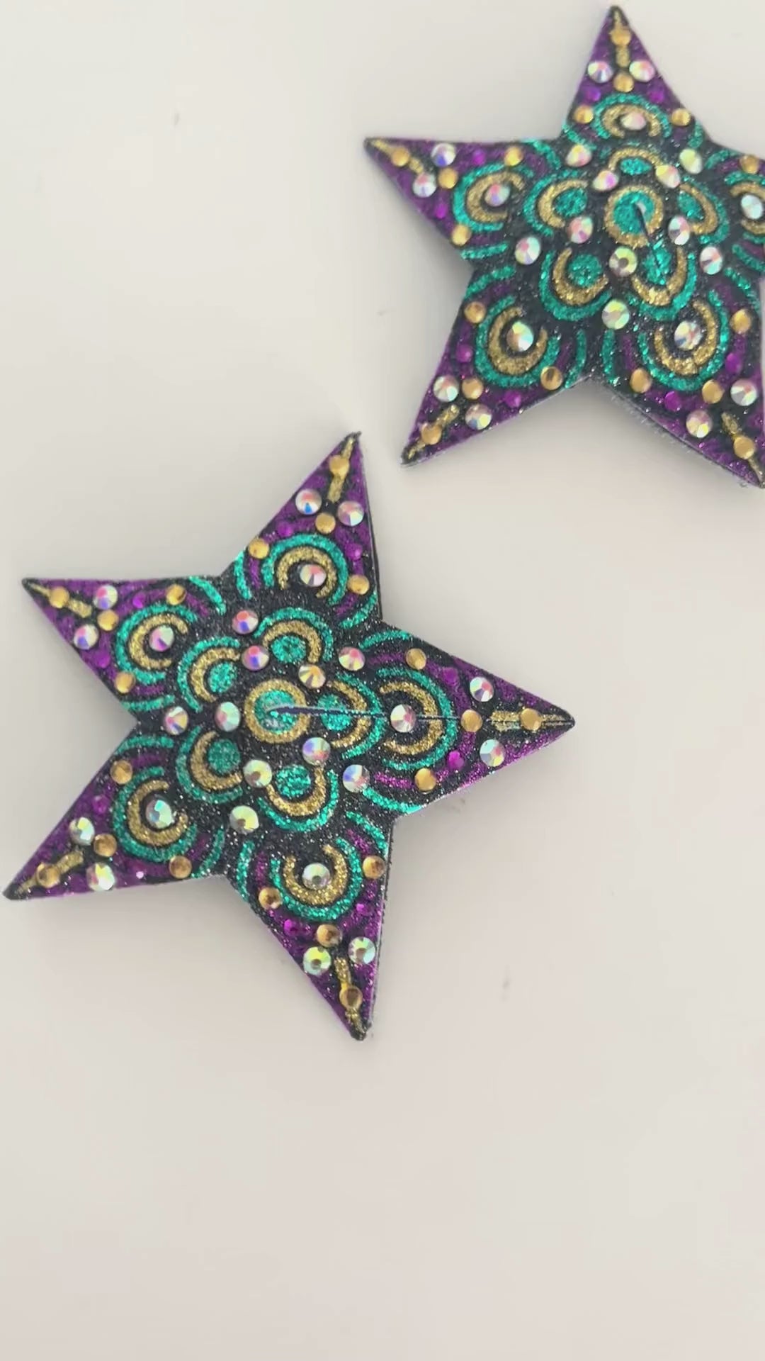 STARRY NIGHT Colourful Mosaic Glitter and Gem STAR Pasties, Nipple Covers (2pcs) for Burlesque Rave Festival Pride Carnival Lingerie
